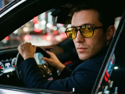 عینک شب مردانه: بیشتر در سبکهای خلبانی (Aviator)، ویفرر و مستطیلی طراحی میشوند که با استایلهای رسمی و کژوال آقایان هماهنگی دارند.