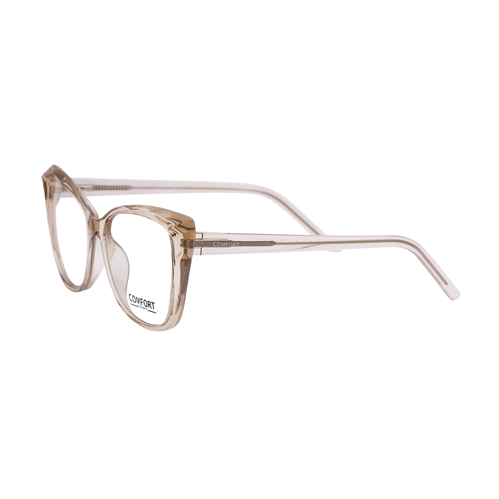 عینک طبی زنانه COMFORT کد 2001، ترکیبی بینظیر از زیبایی مدرن، راحتی فوقالعاده و کیفیتی ممتاز است که برای بانوانی با سلیقه خاص طراحی شده است. این مدل با فریم استات شفاف (شیشهای) و طراحی چشمنواز گربهای (Cat-eye)، نه تنها به سلامت بینایی شما کمک میکند، بلکه به عنوان یک اکسسوری مد روز، استایل شما را تکمیل و نگاهی نافذ و جذاب به شما میبخشد.