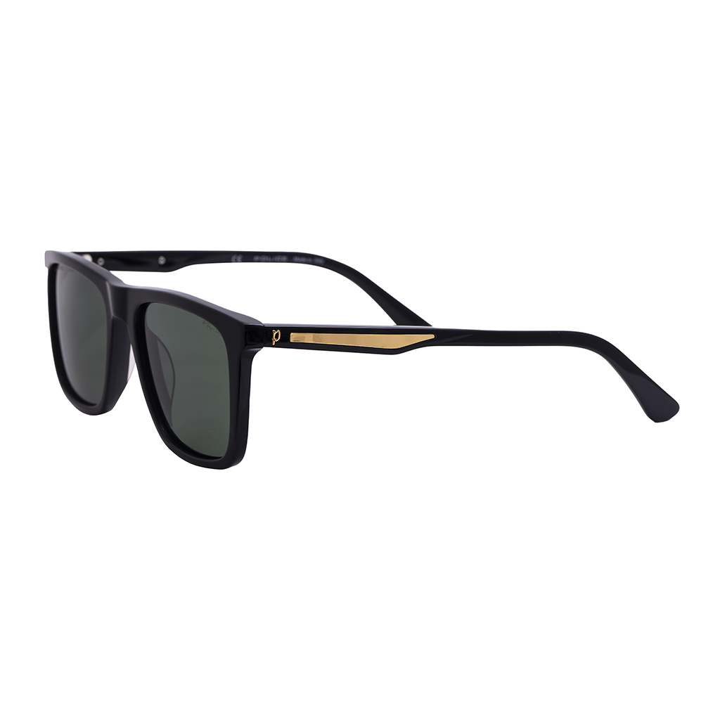 جزئیات طلایی: لوگوی کوچک و برجسته "p" طلایی رنگ روی دسته، به همراه نوار طلایی رنگ، جلوهای لوکس و اسپرت به عینک بخشیده است.